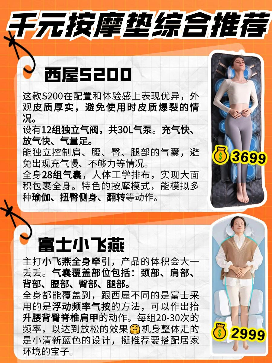 摘要:最新款按摩墊價(jià)格表公布,為您的家庭歡聚時(shí)光增添溫馨。按摩墊不僅具有舒緩疲勞、放松身心的功能,更是家人共度美好時(shí)光的最佳伴侶。價(jià)格實(shí)惠,品質(zhì)卓越,為您和家人的健康投資帶來超值回報(bào)??靵磉x購最新款按摩墊,讓家庭歡聚更加舒適愉悅。