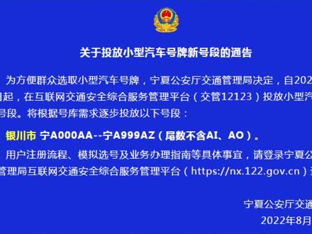銀川最新車牌動態(tài),啟程探索自然美景。駕車出發(fā),尋找內(nèi)心寧靜與平和。游覽銀川周邊風(fēng)景名勝,感受大自然的魅力,享受寧靜的旅程。車牌更新,出行更便捷,暢游銀川大地,領(lǐng)略美麗的自然風(fēng)光,體驗寧靜與平和的內(nèi)心之旅。