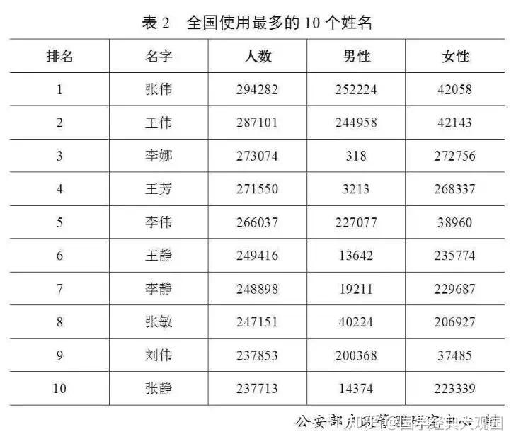 最新全國(guó)姓氏排行公布,排名榜單揭曉