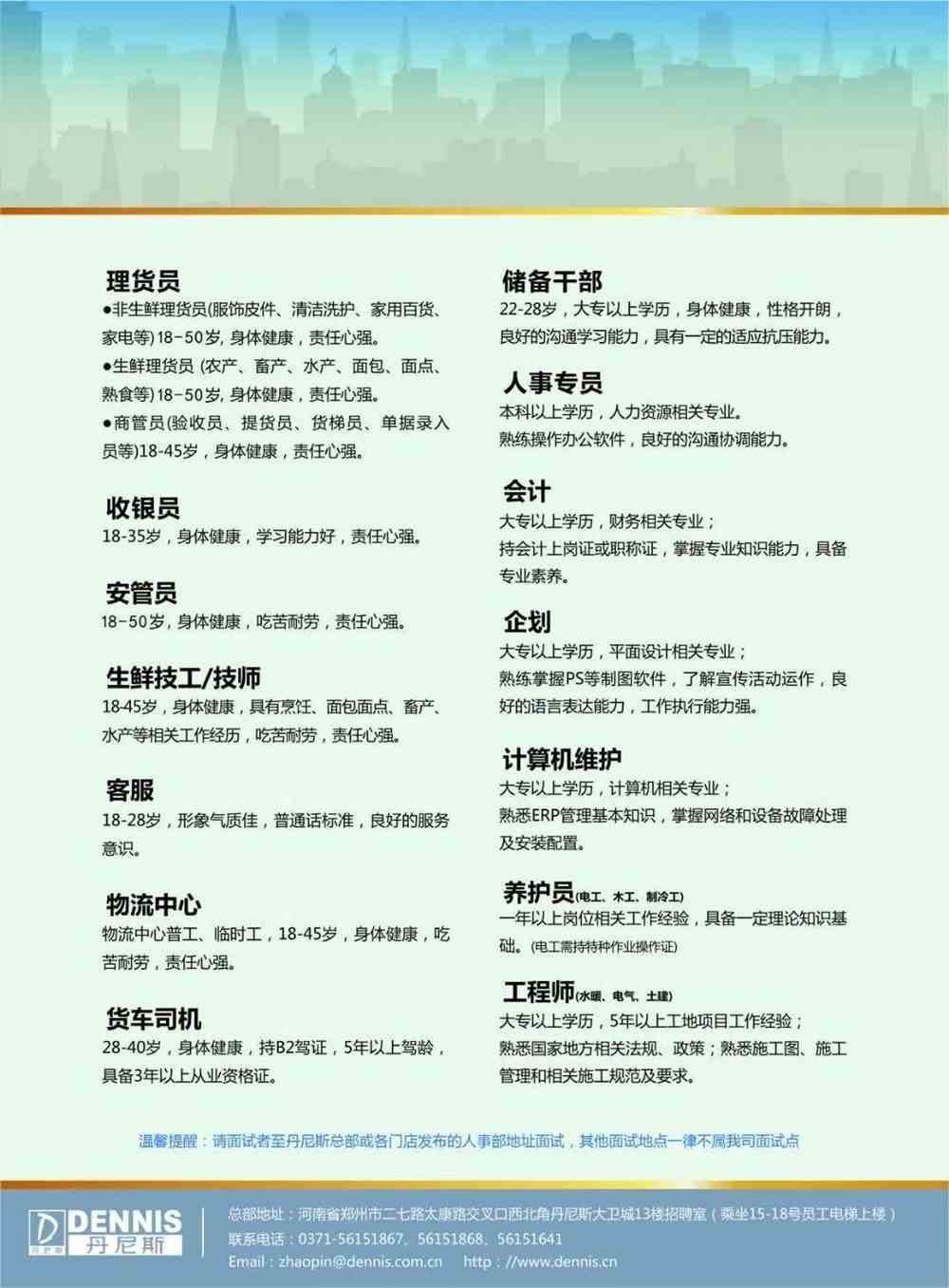 新鄭丹尼斯也注重員工的個(gè)人成長(zhǎng)和發(fā)展,我們提供完善的培訓(xùn)體系,幫助員工不斷提升自己的技能和知識(shí),我們也非常重視員工的工作環(huán)境和福利待遇,努力為員工創(chuàng)造一個(gè)舒適、健康的工作條件,我們相信,只有讓員工感受到公司的關(guān)愛(ài)和尊重,才能更好地激發(fā)員工的工作熱情和創(chuàng)造力,如果您對(duì)新鄭丹尼斯的招聘信息感興趣,請(qǐng)盡快與我們聯(lián)系,我們期待您的加入,一起踏上這個(gè)探索自然美景的旅程!